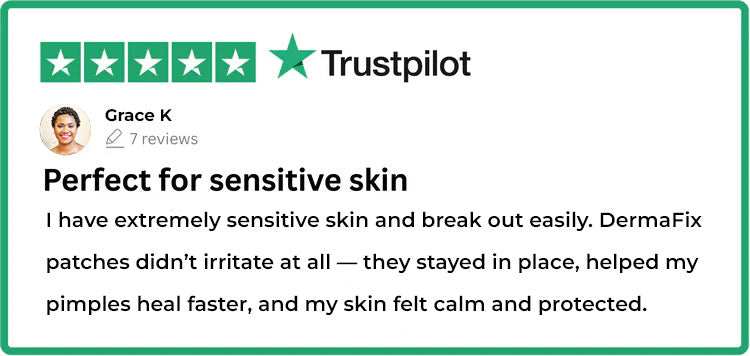"I’ve struggled with forehead and cheek breakouts for months. DermaFix lets me cut the perfect size for each spot. Overnight, the redness and swelling go down, and my skin feels so much calmer!"